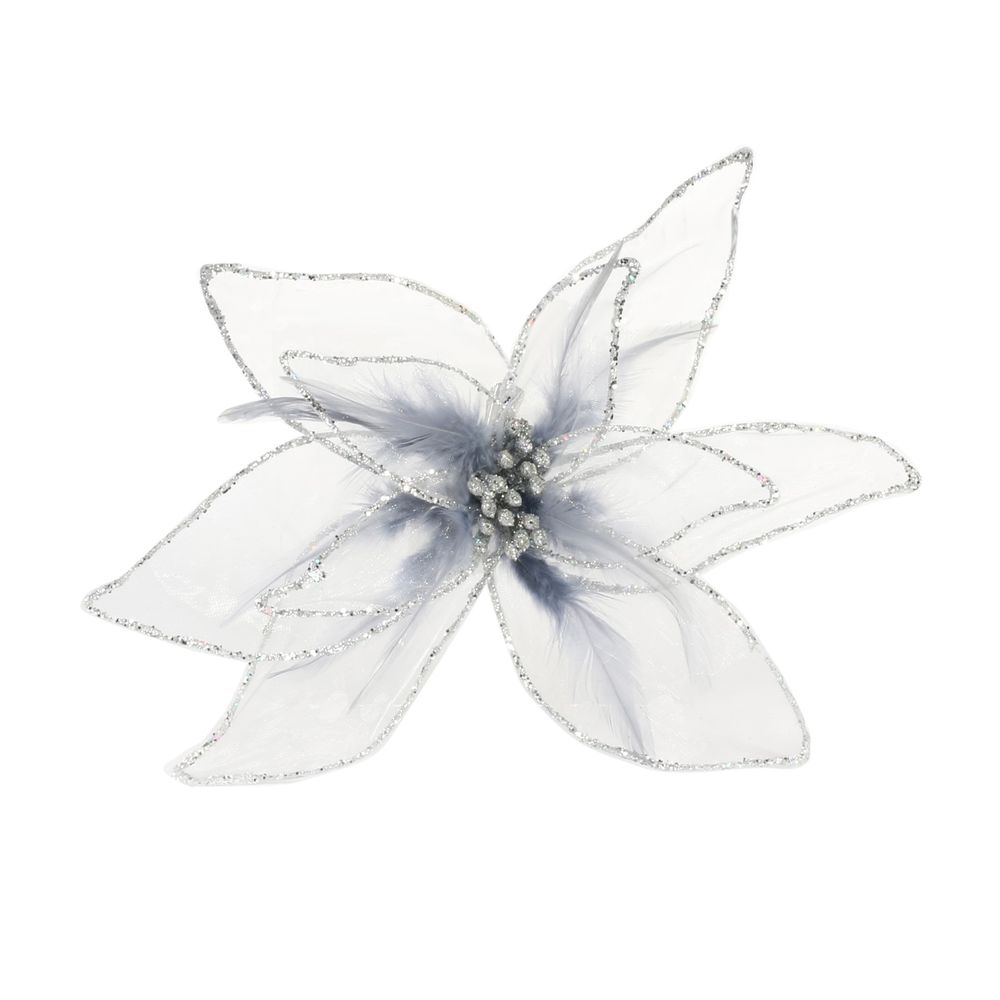 Silver Poinsettia Organza with Clip (Dia29cm)