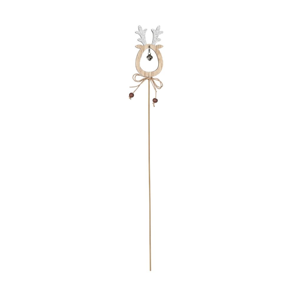 Silver Reindeer Wooden Pick with Bell (50cm)