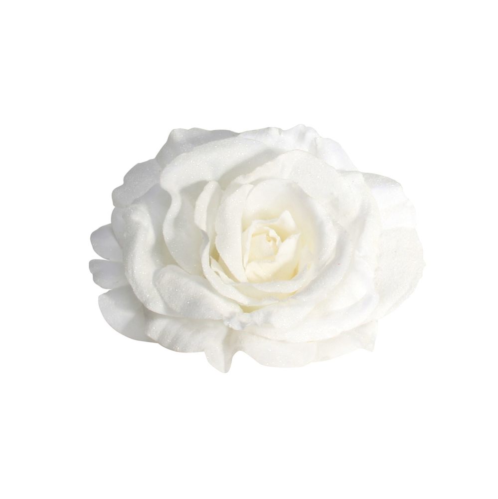 This stunning white rose is the perfect addition to your Christmas displays and decorations this year. The clip allows you to place the rose anywhere you wish. The glitter on the rose gives the rose a nice Christmas sparkle.