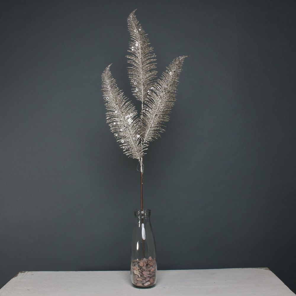 This stunning glitter fern leaf spray features a lustrous champagne glitter finish.