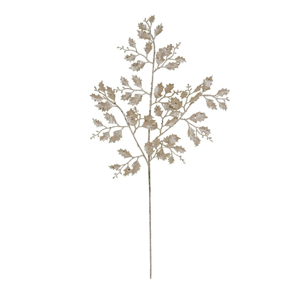 Champagne Glitter Holly Leaf Spray