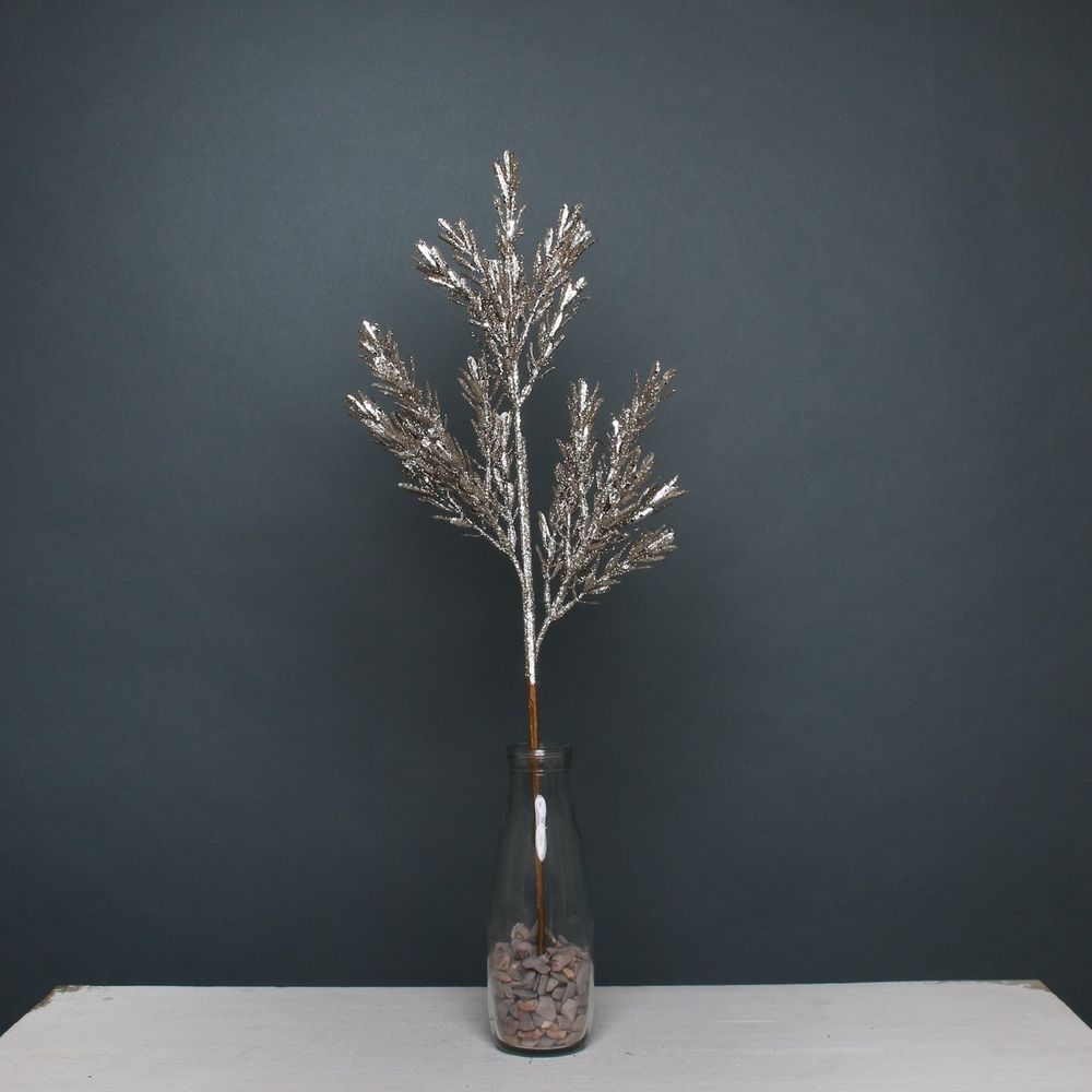 This stunning glitter ruscus spray features a lustrous champagne glitter finish.