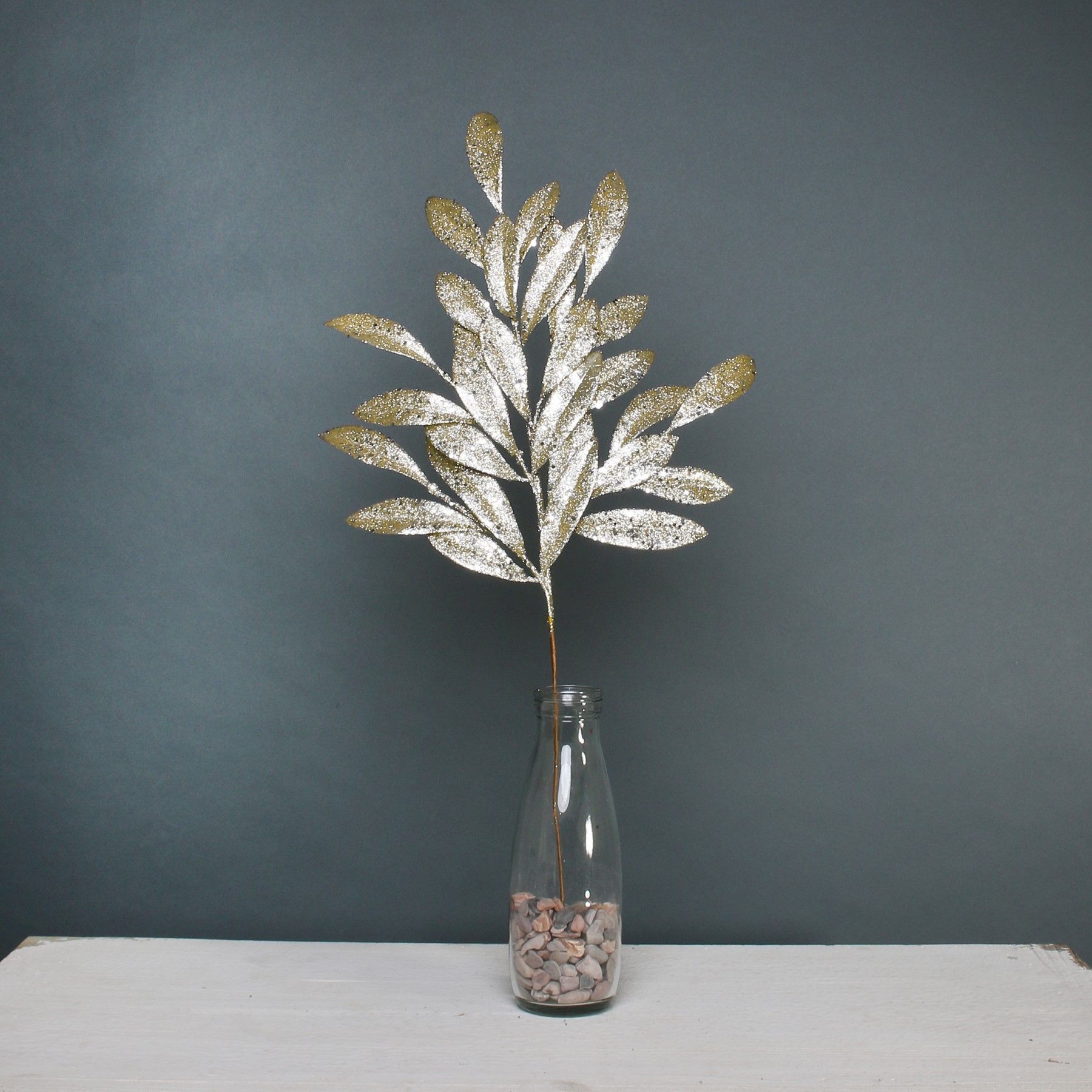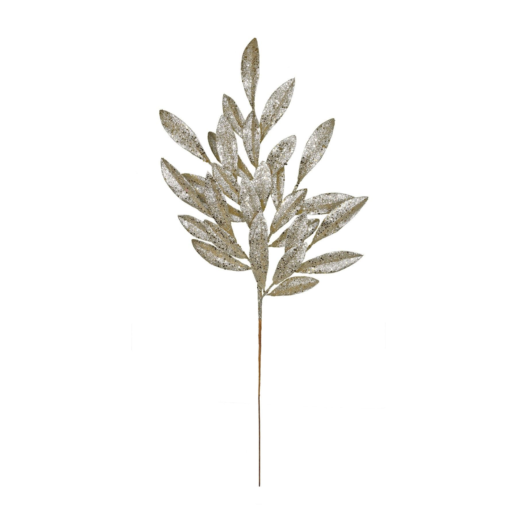 This stunning glitter bay leaf spray features a lustrous gold glitter finish.