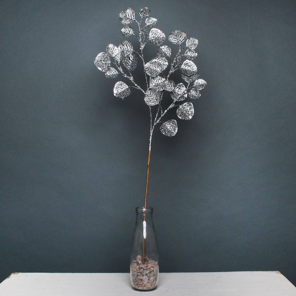 Ideal for any Christmas floral arrangement or for incorporating in your wreath designs, this stunning eucalyptus spray features a lustrous pewter glitter finish.