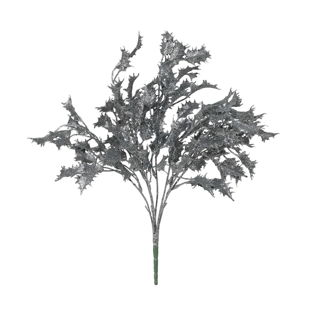 Ideal for any Christmas floral arrangement or for incorporating in your wreath designs, this stunning Holly bush spray features a lustrous pewter glitter finish.