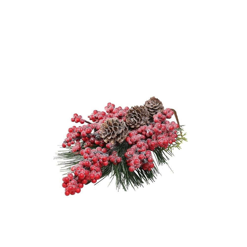 This stunning red berry and pine spray is highly realistic and would be perfect for any vase display or for incorporating in a wreath.