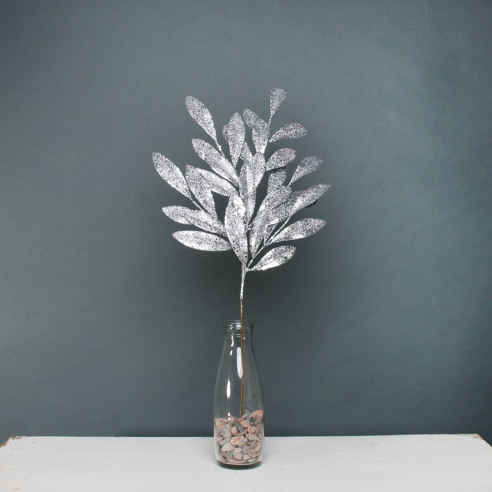 Ideal for any Christmas floral arrangement or for incorporating in your wreath designs, this stunning Bay leaf spray features a lustrous silver glitter finish.