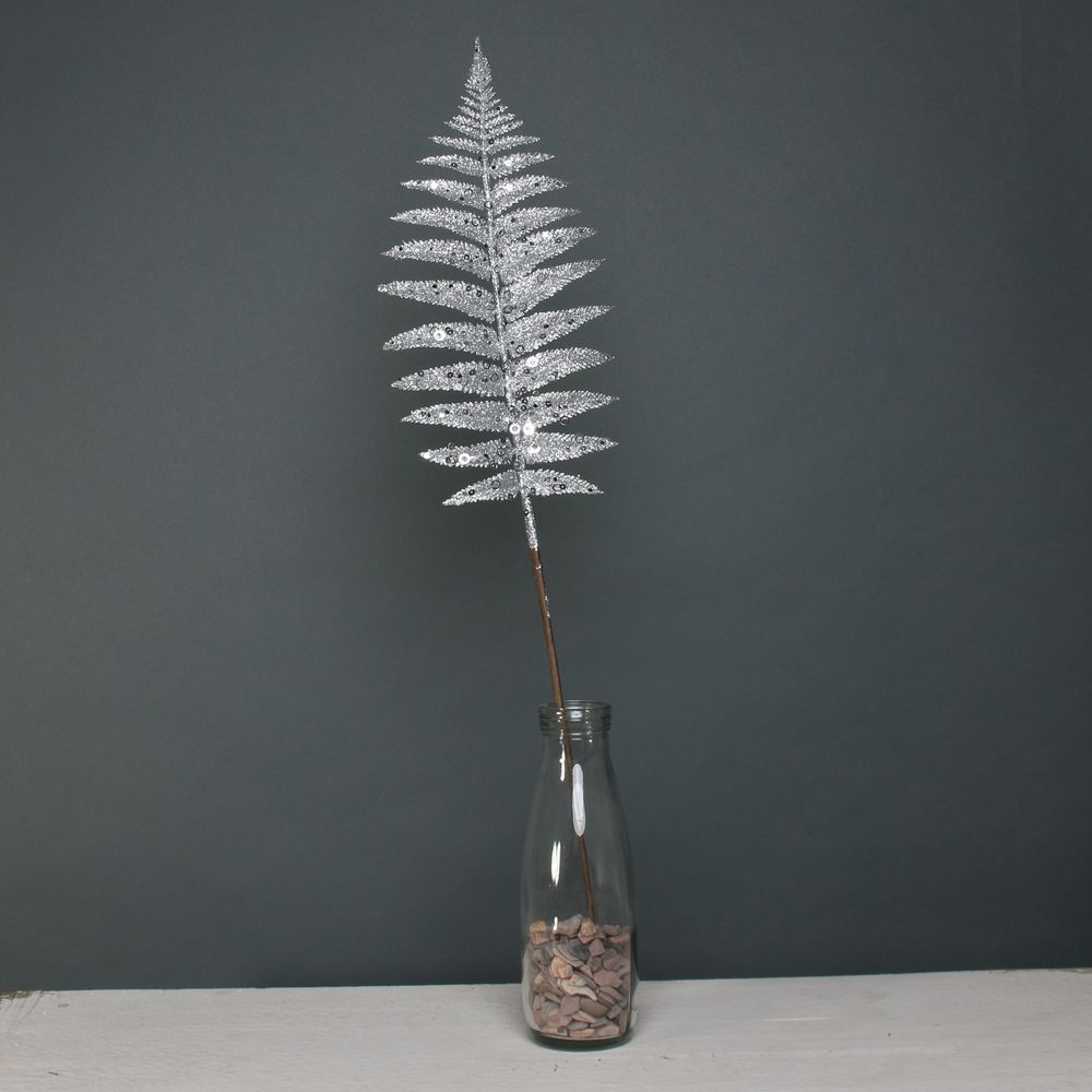This stunning glitter fern bush spray features a lustrous silver glitter finish.