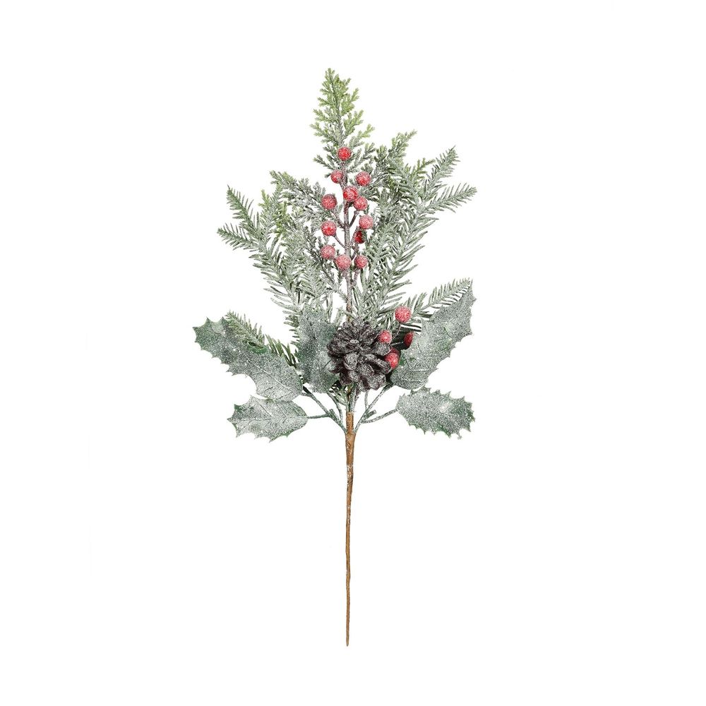 Frosted Foliage, Cone & Red Berry Pick (H48cm)
