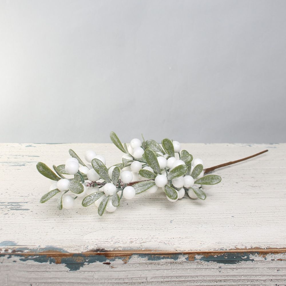 This lovely frosted white berry spray features large berries arranged for a highly realistic look with foliage.
