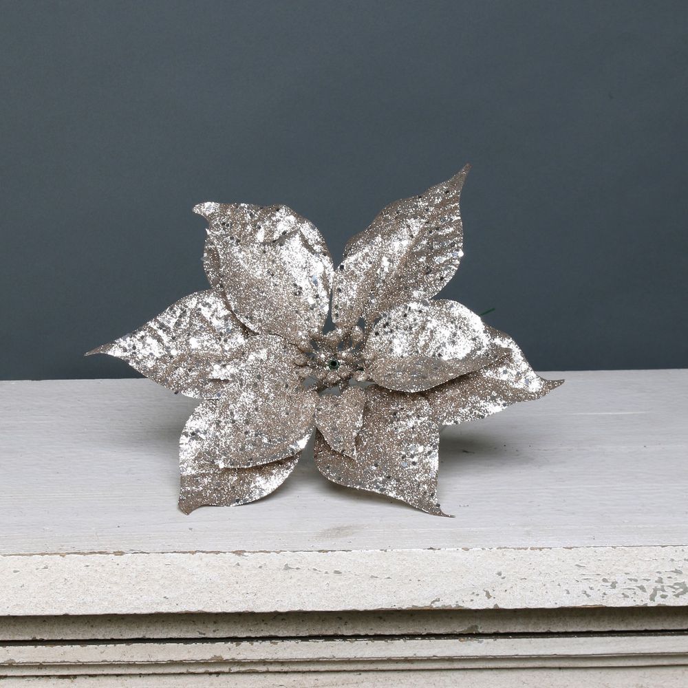 This lovely poinsettia has a champagne glitter finish for a beautiful vase or table centrepiece.