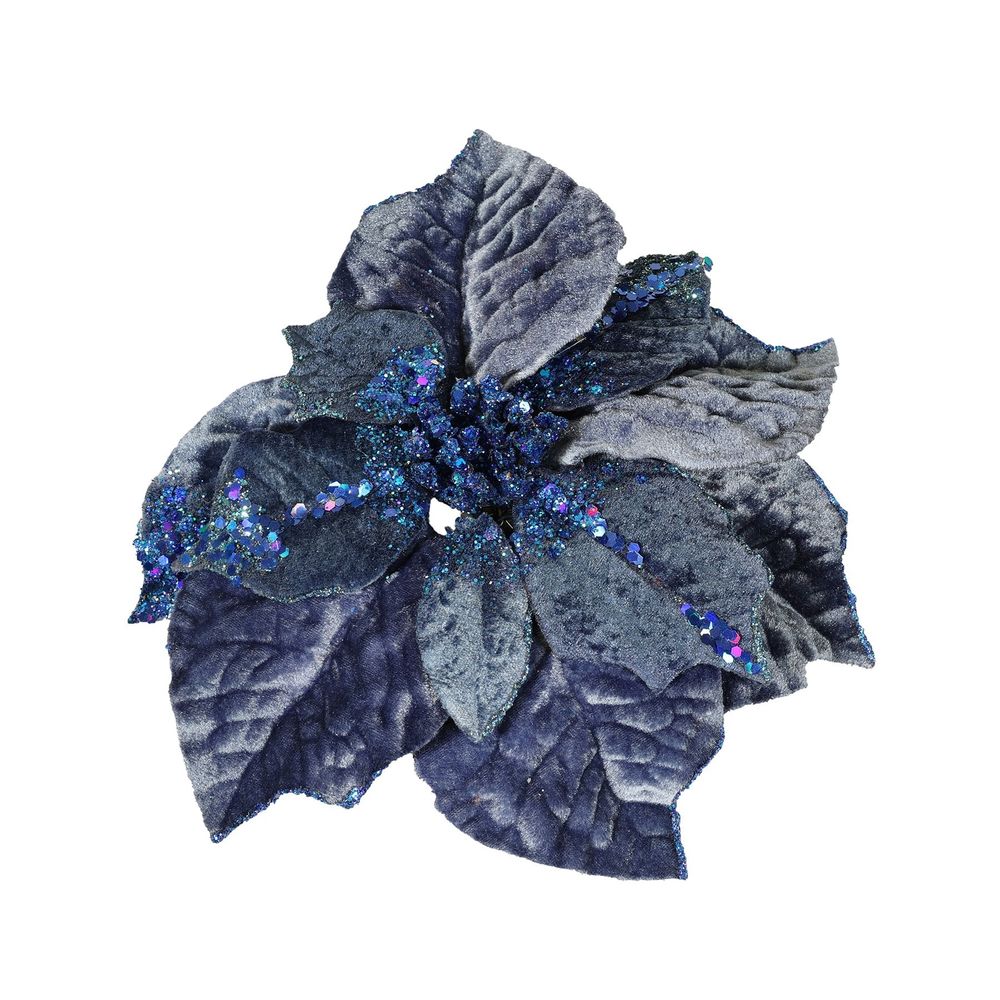 Cobalt Velvet Poinsettia with Clip (Dia25cm)