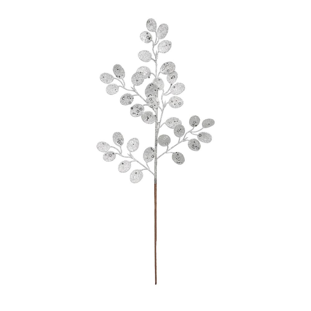 This glitter stem is perfect for your displays this Christmas! It's glittered decorations adds some Christmas sparkle and will go nicely against other pieces of foliage and stems!