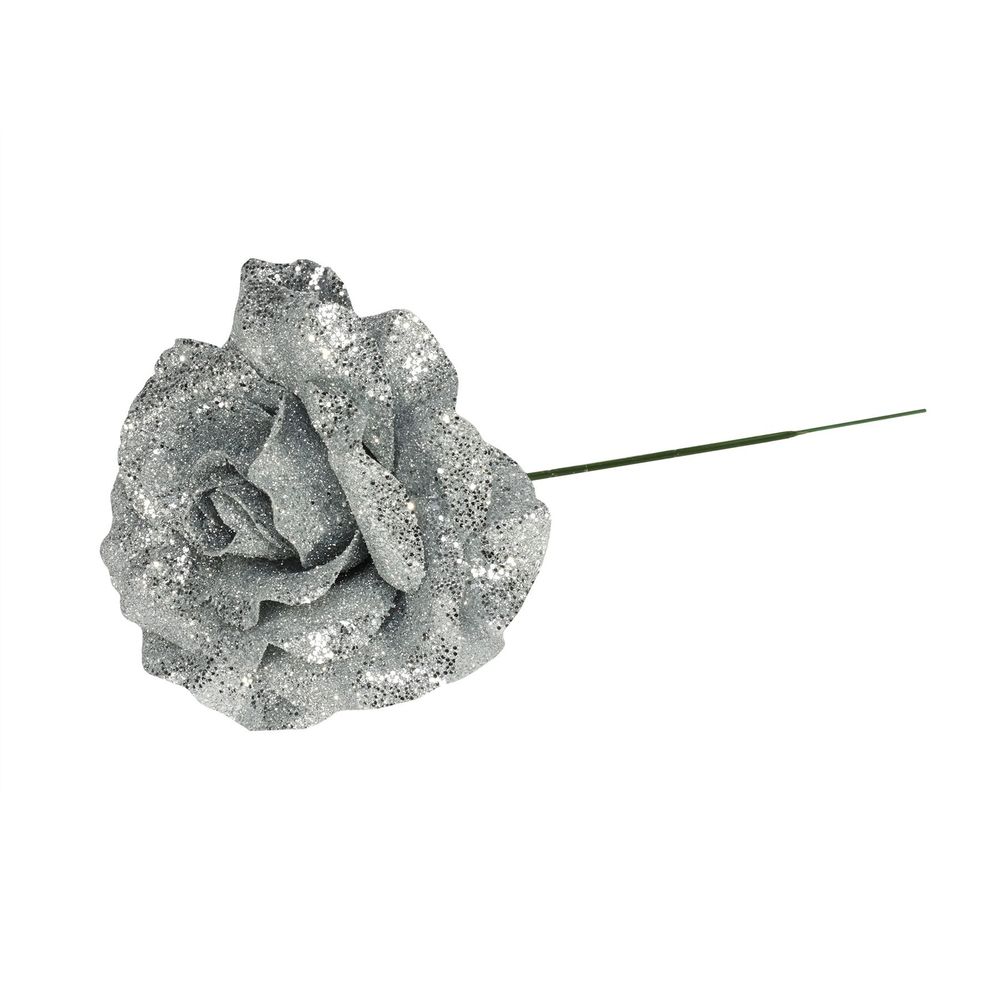 This stunning silver rose is the perfect addition to your Christmas displays and decorations this year. The glitter on the rose gives the rose a nice Christmas sparkle.
