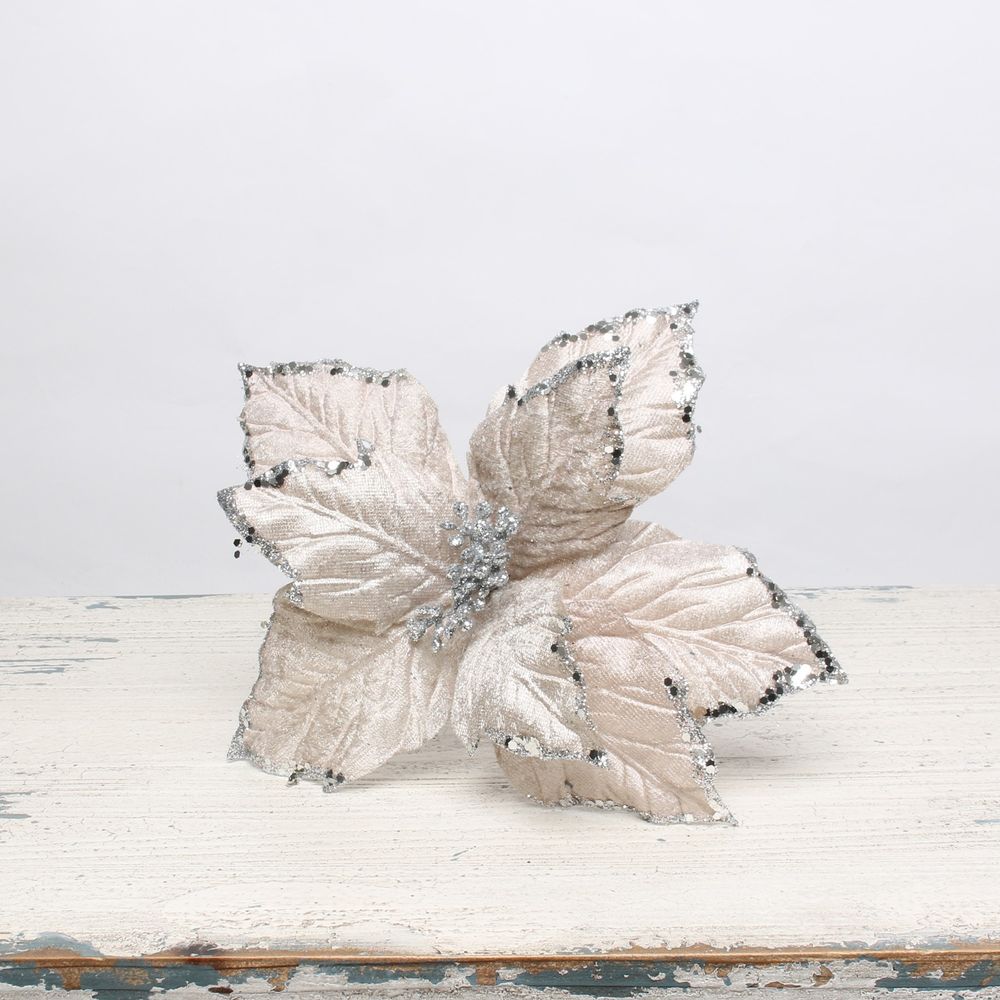 Small Silver Poinsettia Pick
