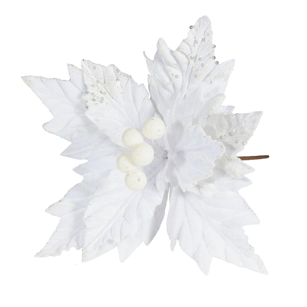 This velvet poinsettia is the ideal addition to your festive displays! The edges are covered in glitter adding a sparkle to the product.
