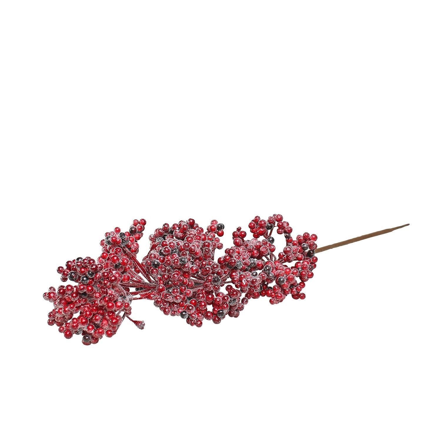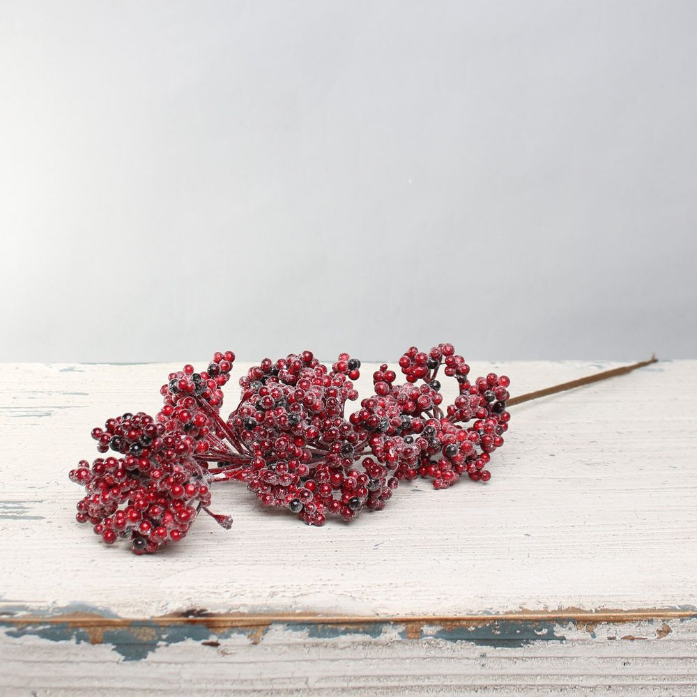 This lovely snowy red berries spray features berries with a snowy frosted finish.