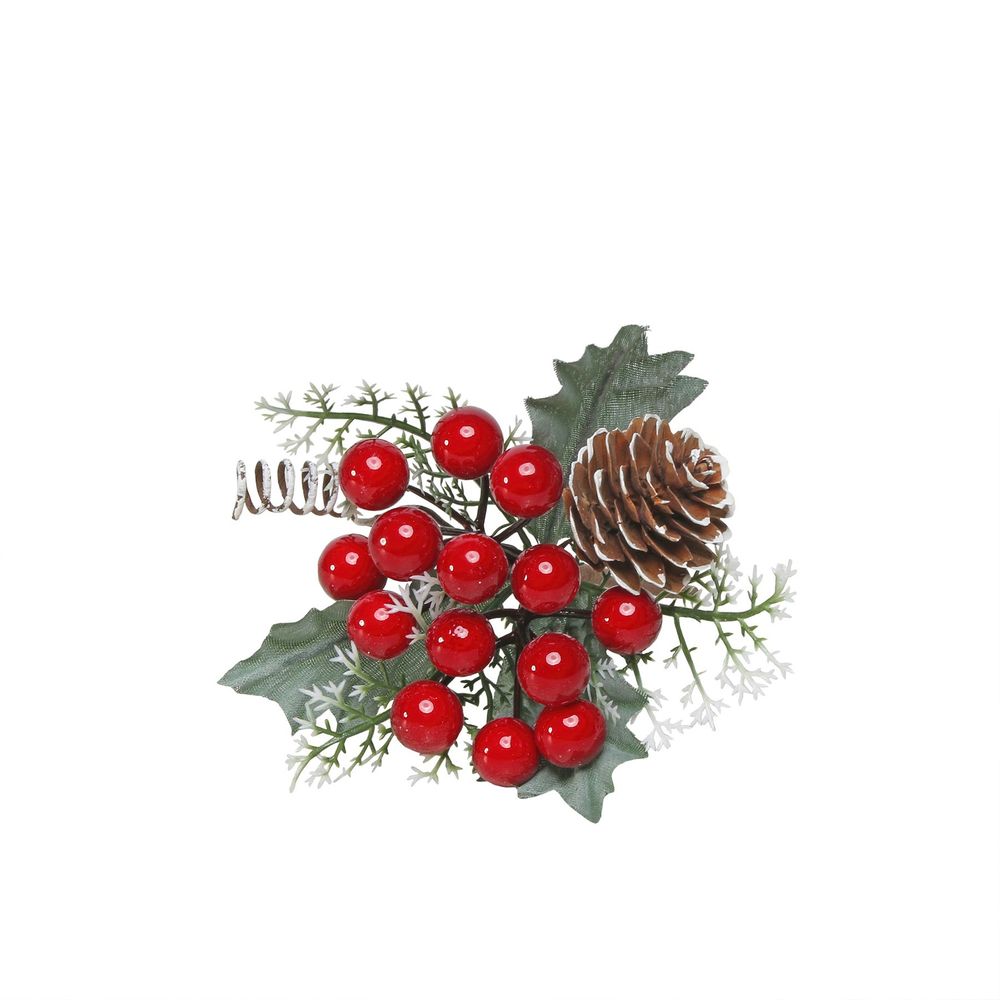This lovely snowy red berry spray features large berries arranged for a highly realistic look, these are complimented by frosty pine cones and foliage.