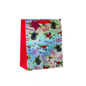 Package your Christmas gifts in this cool alternative dinosaur gift bag. This gift bag features a festive dinosaur design, perfect for dinosaur lovers!