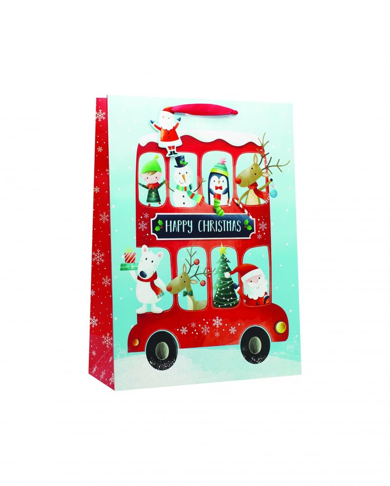 This large gift bag features a Christmas bus design, perfect for adding a fun touch to your Christmas gifting.
