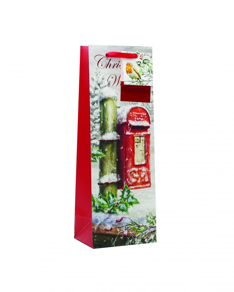 This bottle bag features a traditional postbox design, perfect for creating a little festive cheer with your gift-giving.