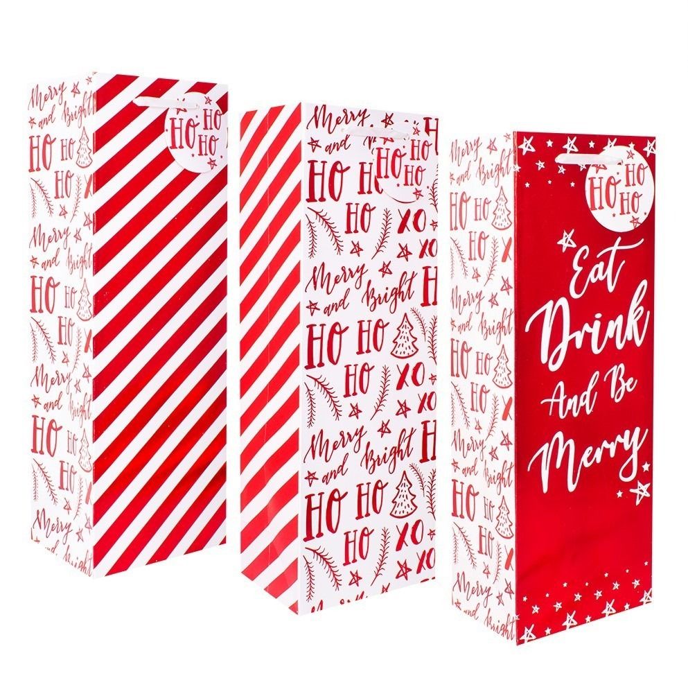 Place your special gifts in a delightful bottle bag with a decorative Christmas design.