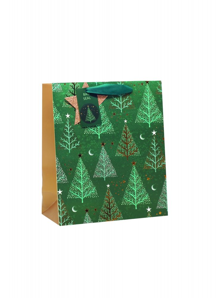 This gift bag features a green woodland design, perfect for creating a little festive cheer with your gift-giving.