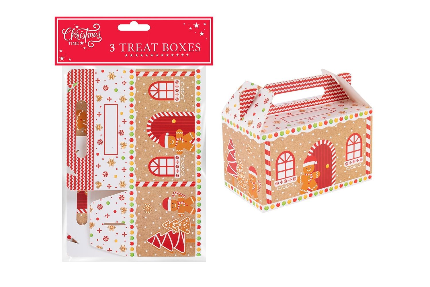 This adorable gingerbread house boxes look good enough to eat! Each boxes features a gingerbread decorative design and finished with sweets and piped icing.