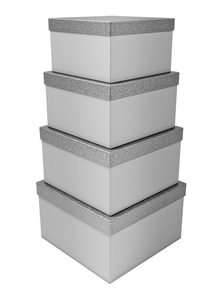 Square Box with Glitter Lid Set of 4 (Silver)