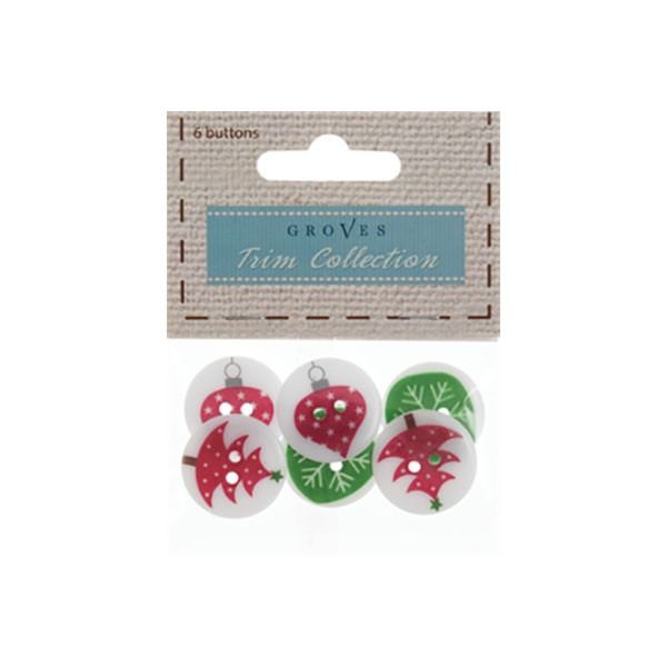 Christmas Tree Buttons Packs Of 6 In 3 Designs 15mm