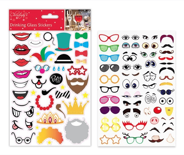 These Glass Stickers are a fun and entertaining product for display, featuring two sheets of stickers, stickers of various features and accessories to decorate your drinking glasses.