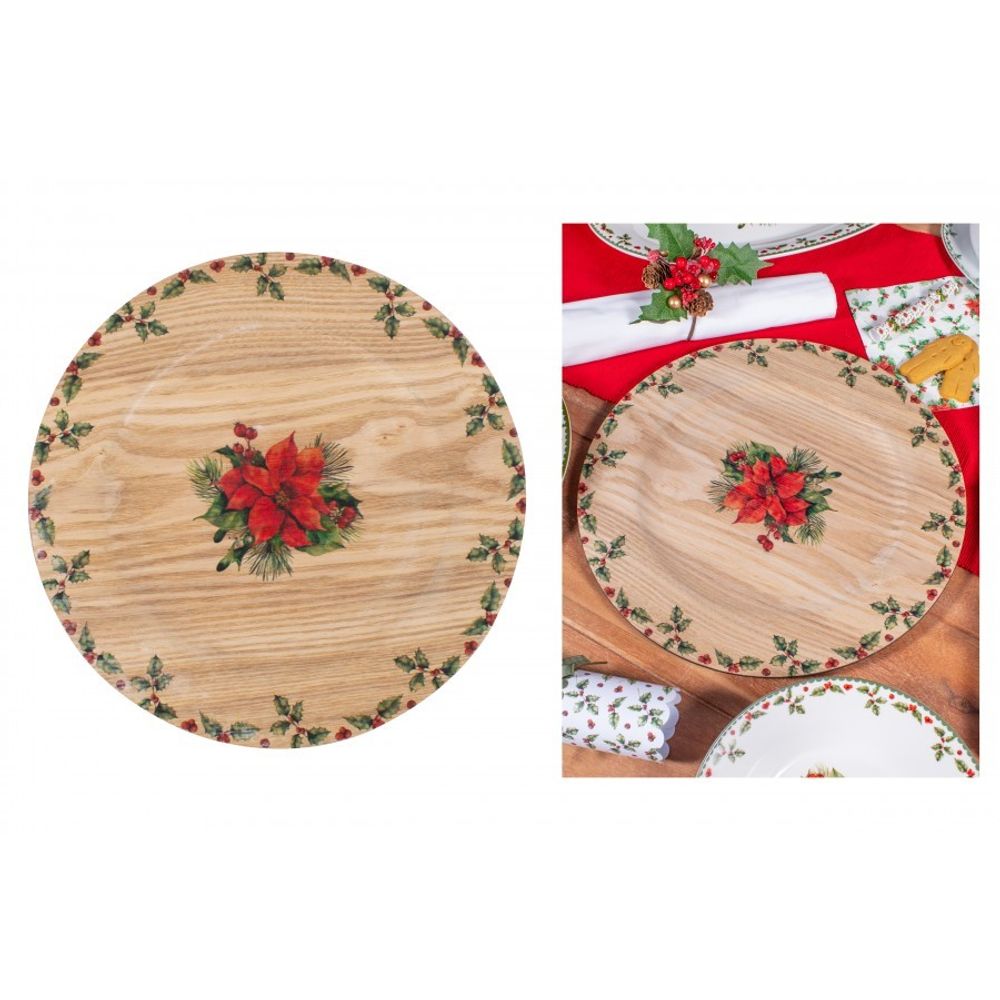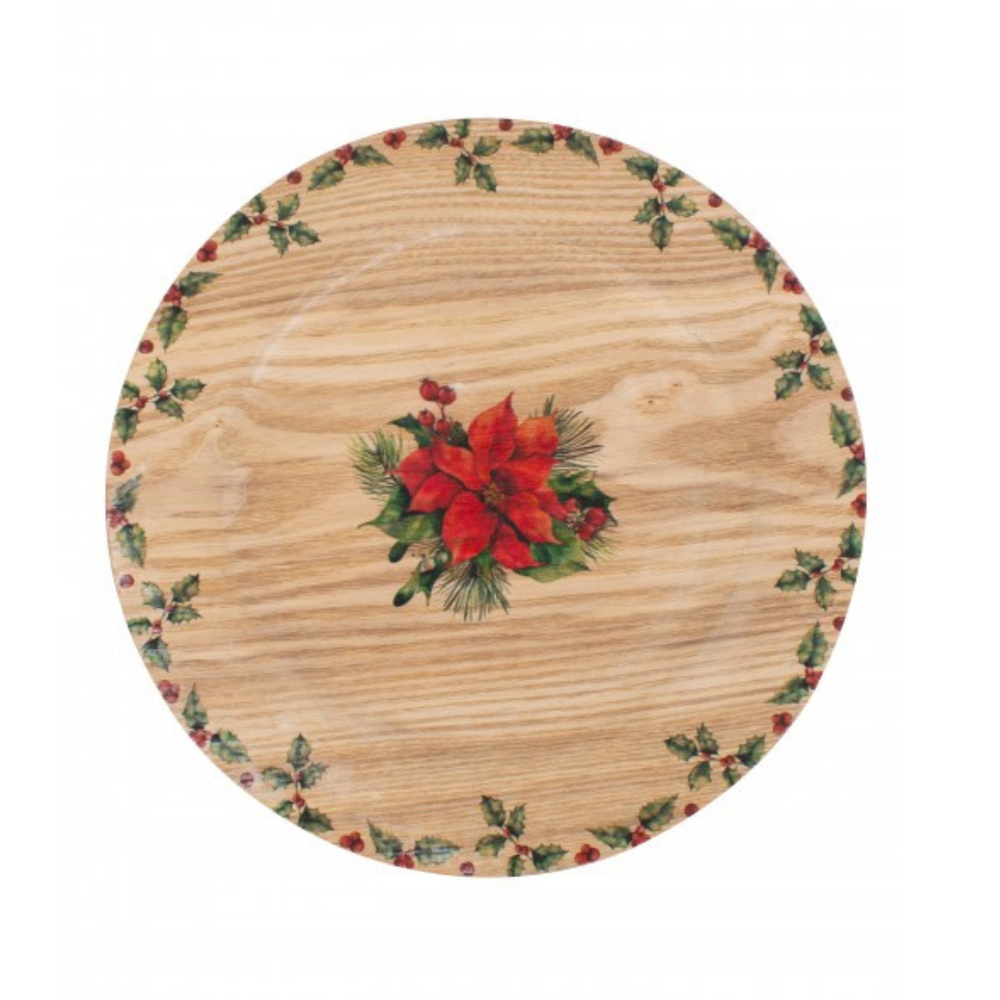 Introducing our Christmas Holly Charger Plate, a stunning addition to your holiday table decor. Measuring 33cm in diameter, this plastic charger plate showcases a festive Christmas Holly print with a wood effect finish. It effortlessly combines practicality and elegance, making it an ideal choice for any occasion.