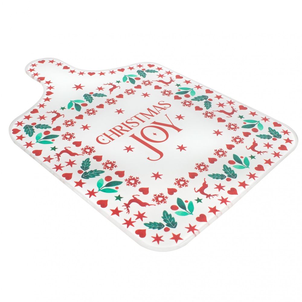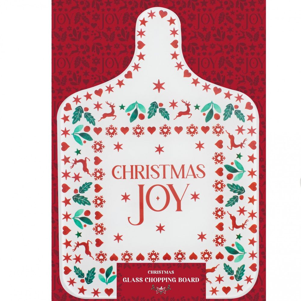 This chopping board is a great addition to any Christmas collection, made from tempered glass material with a handle for easy transferring of chopped food and featuring a Christmas joy design.