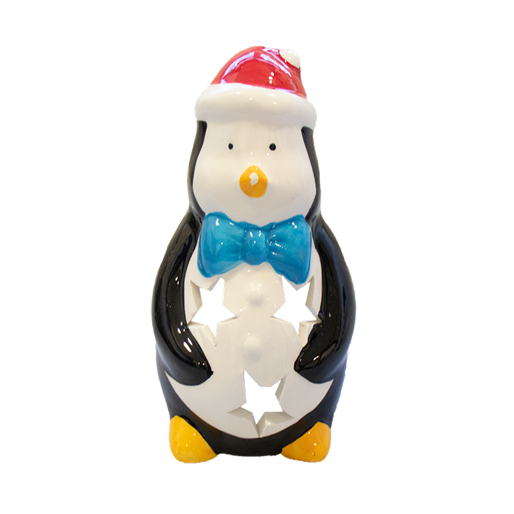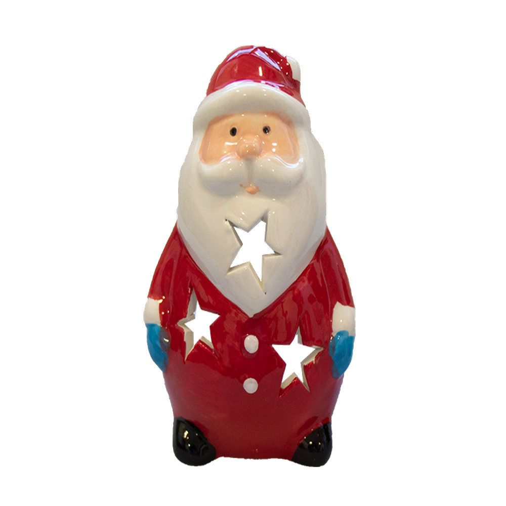Add a festive touch to your home for the Christmas season with the Novelty Christmas Tea Light Holder. This beautifully crafted stoneware tea light holder features a charming Christmas figure and cutout stars, resulting in gentle candlelight illuminating any room. The 13 x 7 cm size ensures it can fit easily on any flat surface while still being noticed. With this eye-catching piece, you can bring a little extra holiday cheer to any location in your house. Enjoy the peaceful atmosphere of Christmas candlelight with the Novelty Christmas Tea Light Holder!