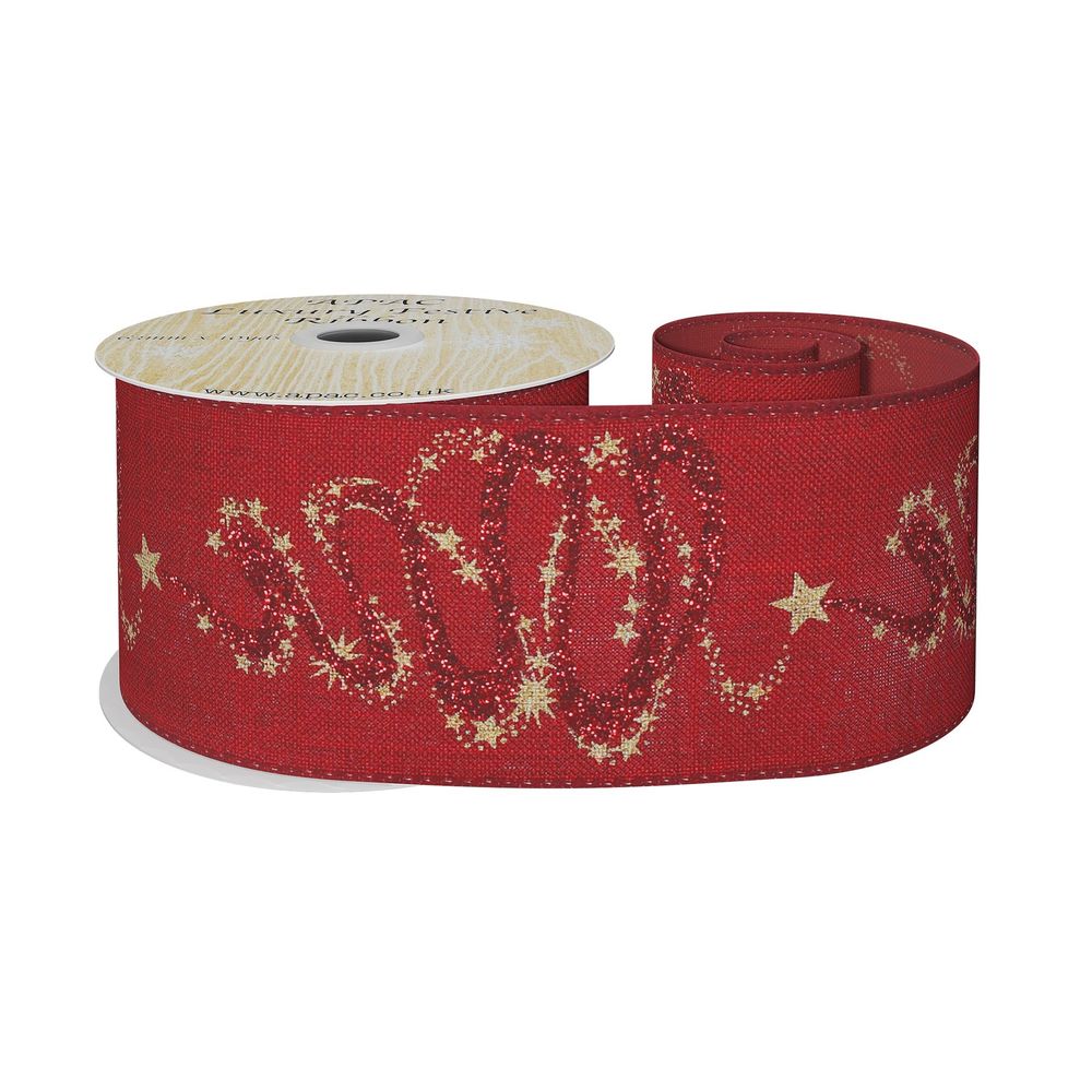 Burgundy Ribbon with Christmas Star and swirl Design (63mm x 10yd)