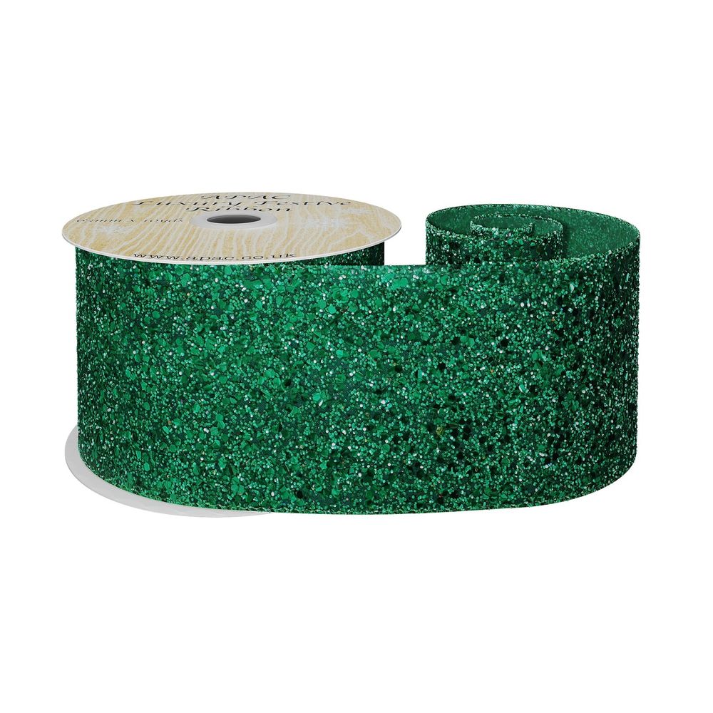 Christmas Green Wired Glitter Ribbon (63mm x 10 yards)