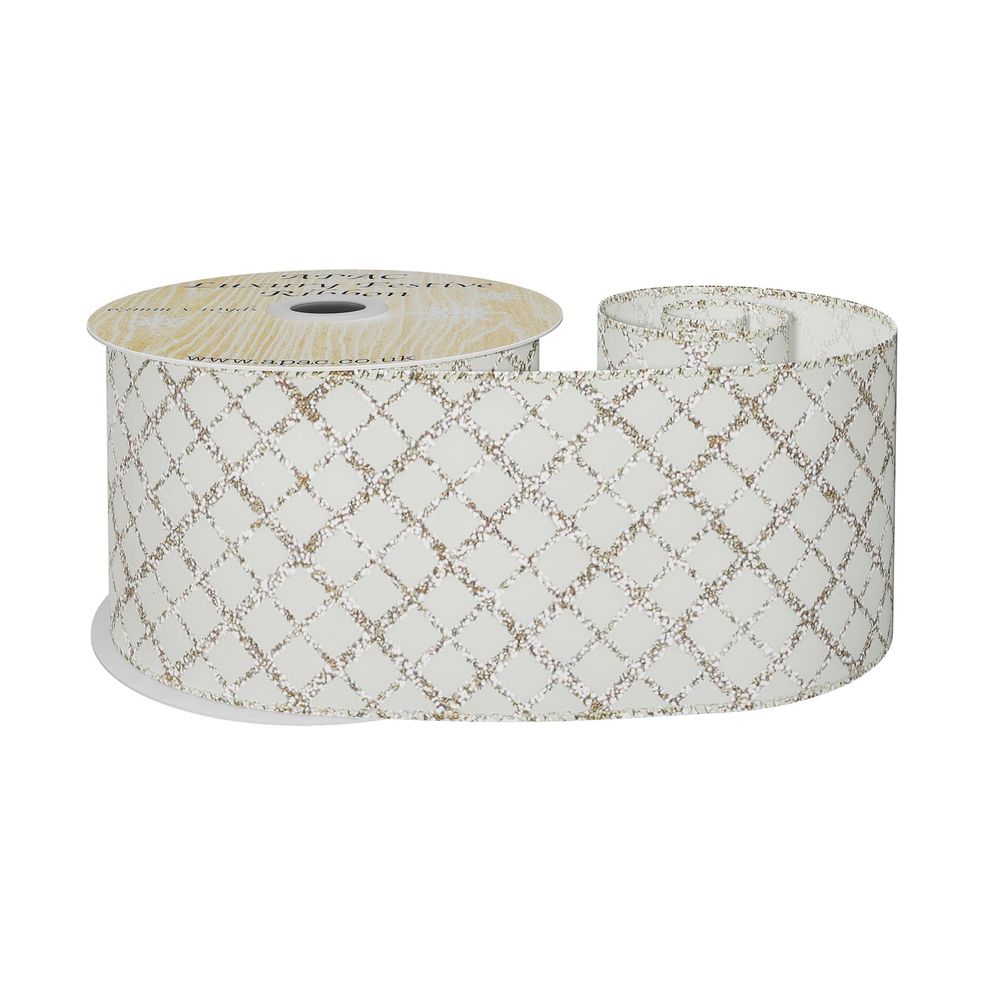 Get in the Christmas spirit with our Cream Wired Ribbon with Gold Diamond Detailing.