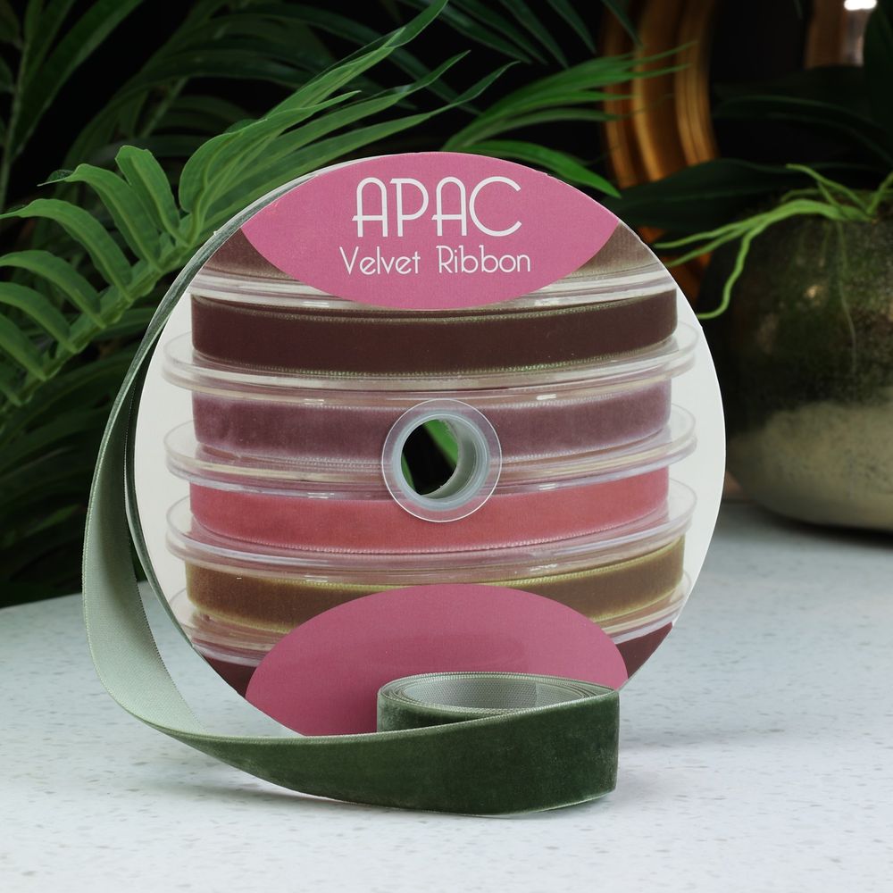 Dusky Green Velvet Ribbon (25mm x 20m)