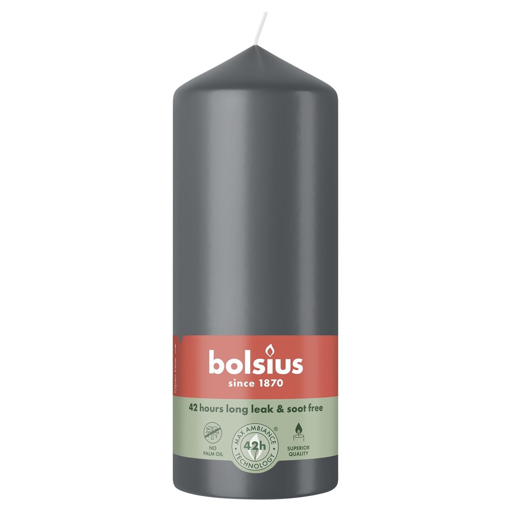 The Bolsius Stormy Grey Essentials Pillar Candle, with its sleek 150mm height, offers a touch of elegance to any space.