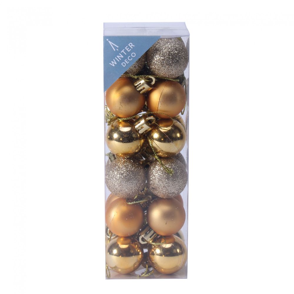This set of 24 Gold Shatterproof Baubles would be a great addition to your tree. The set includes matte, metallic and glitter finishes.