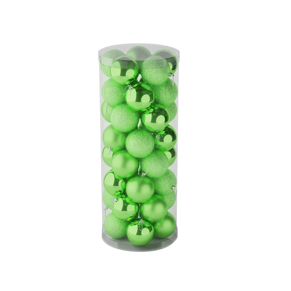 48 Light Green Baubles in Matt, Shiny & Glitter Finish (8cm)
