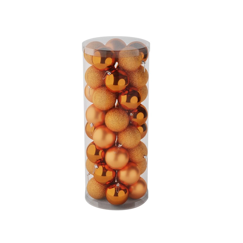 48 Orange Baubles in Matt, Shiny & Glitter Finish (8cm)