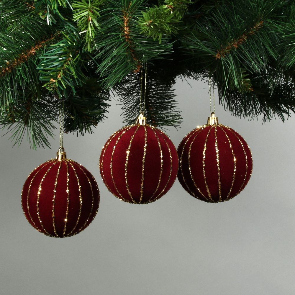 8cm Red Velvet Baubles with Glitter Trim (Set of 6)