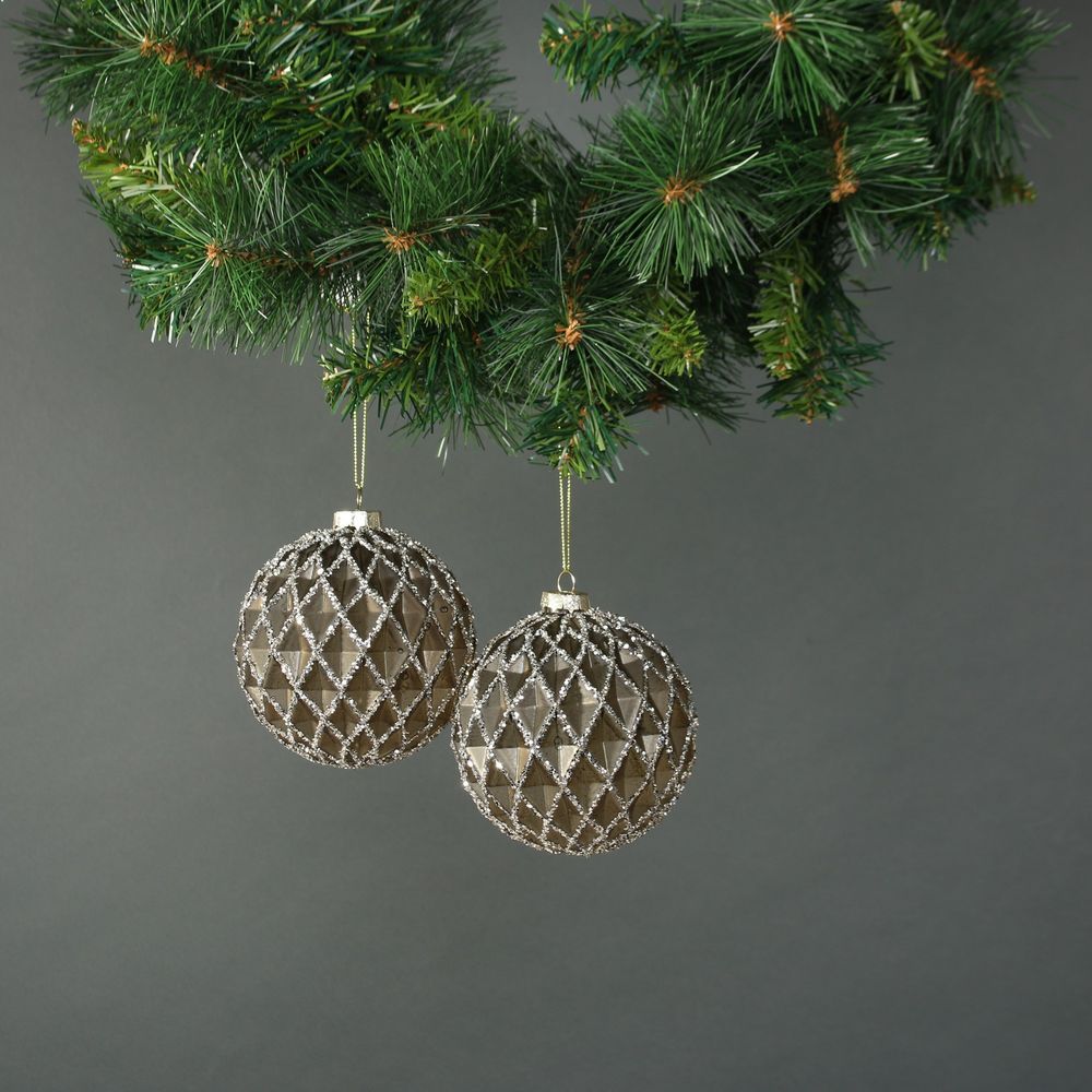 These geometric diamond baubles have a beautiful golden sheen with a glitter decal.
