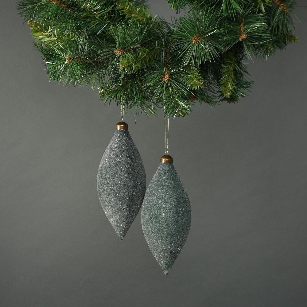 These stunning baubles come in a beautiful frosted jade hue giving them a luxury feel. Their classic drop shape gives a traditional feel to any tree.