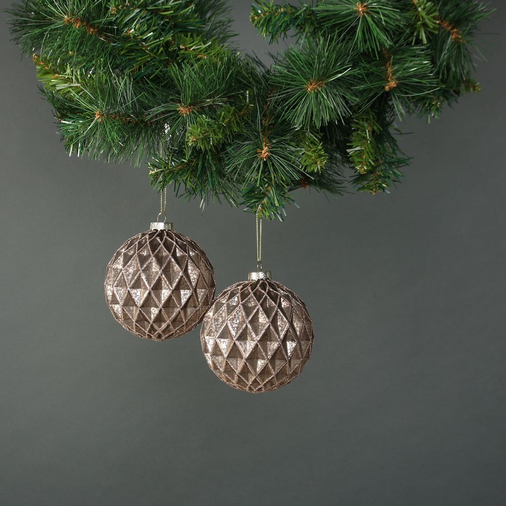 These geometric diamond baubles have a beautiful golden sheen with a glitter decal.