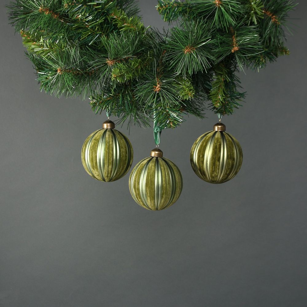 Kaia 8cm Glass Green Velvet Bauble (Set of 4)