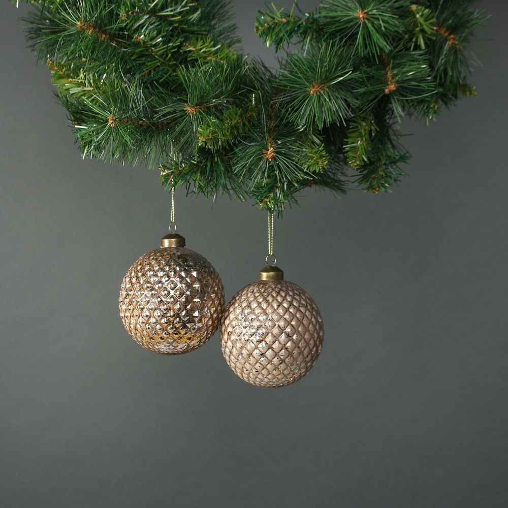 Lorelle 10cm Glass Diamond Bauble Copper Gold (Set of 4)