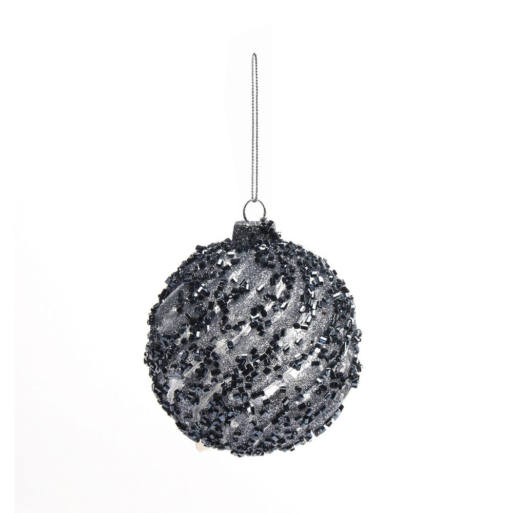 Midnight Blue Sequin Glass Bauble (80mm)