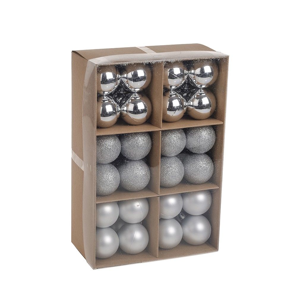Silver Baubles Assorted Pack (4cm) (48 pieces)